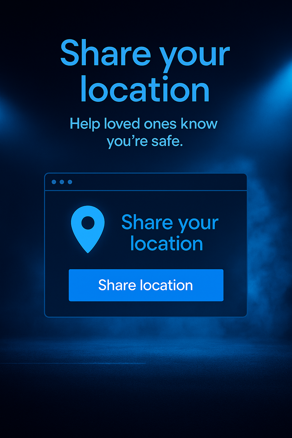 /Collection: /by davooda/Type: PNG/A visually appealing graphic promoting the concept of sharing location for safety, featuring a modern interface design suitable for app marketing or safety awareness campaigns.