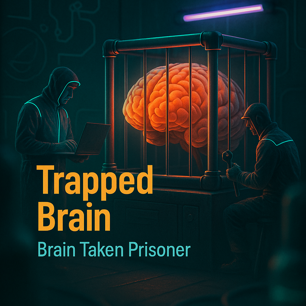 Conceptual Artwork of a Captive Brain with Tech Elements