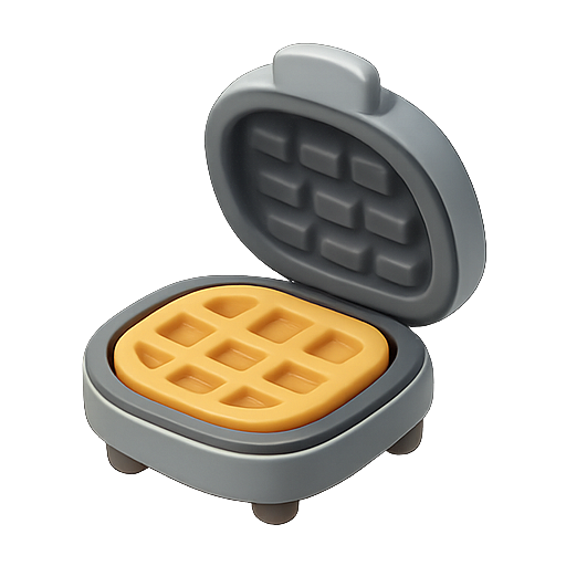 A modern, minimalist illustration of a waffle maker with a golden waffle inside. Ideal for food-related graphics and kitchen appliance marketing.