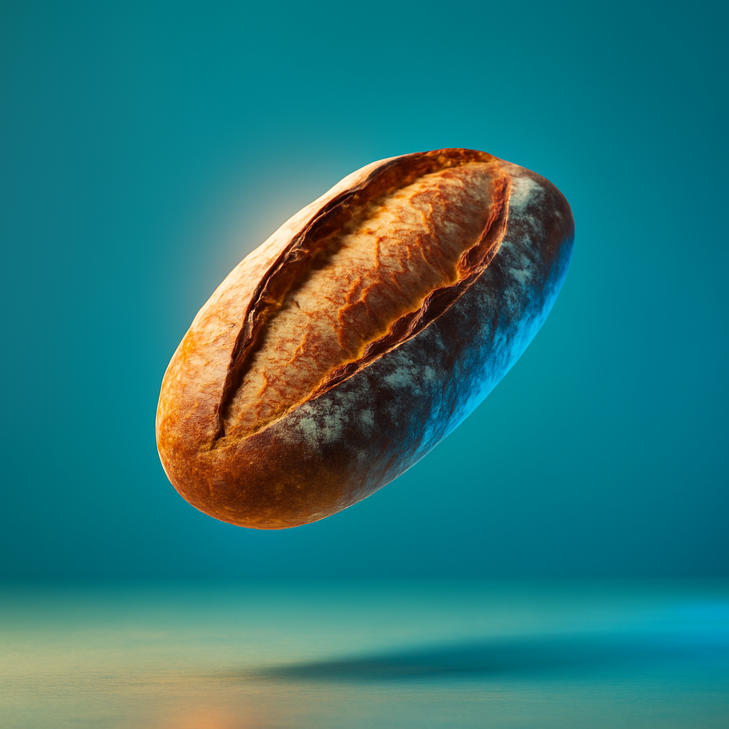 Dynamic Realism of Floating Bread Against a Colorful Background