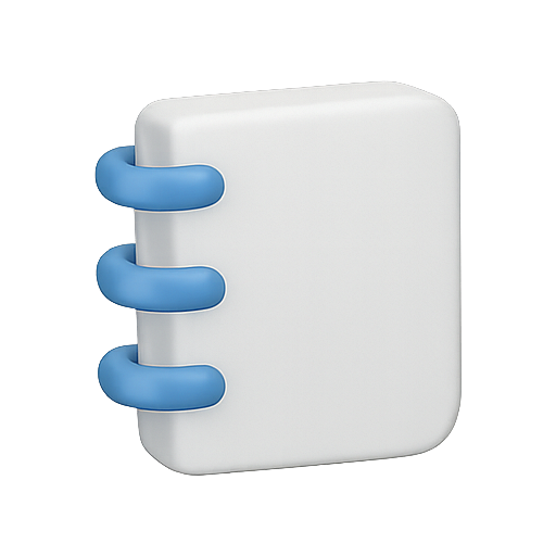 A minimalist 3D icon depicting a notebook with blue spiral bindings, suitable for digital applications or educational platforms.