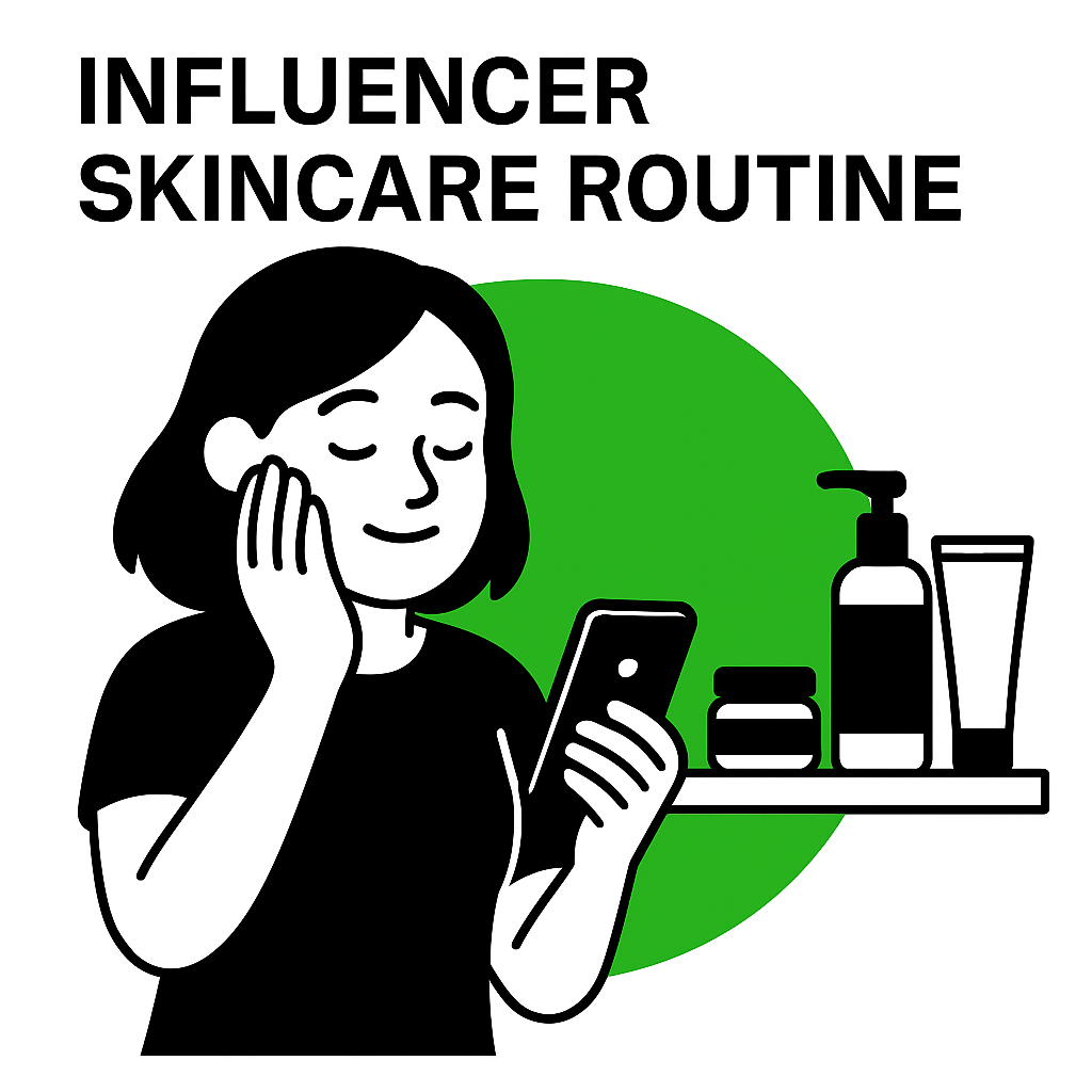 Illustration of Influencer Skincare Routine with Simple Line Art