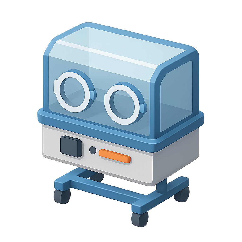 /Collection: /by davooda/Type: PNG/A sleek 3D icon of an incubator, depicted in a three-quarter view with a transparent background. The design features rounded edges and a volumetric, isometric style.