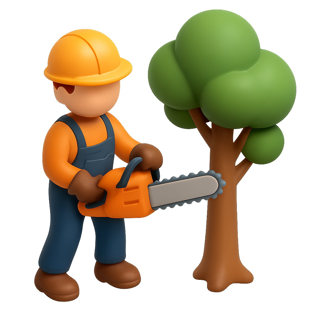 3D Tree Trimmer Icon with Chainsaw in Isometric View