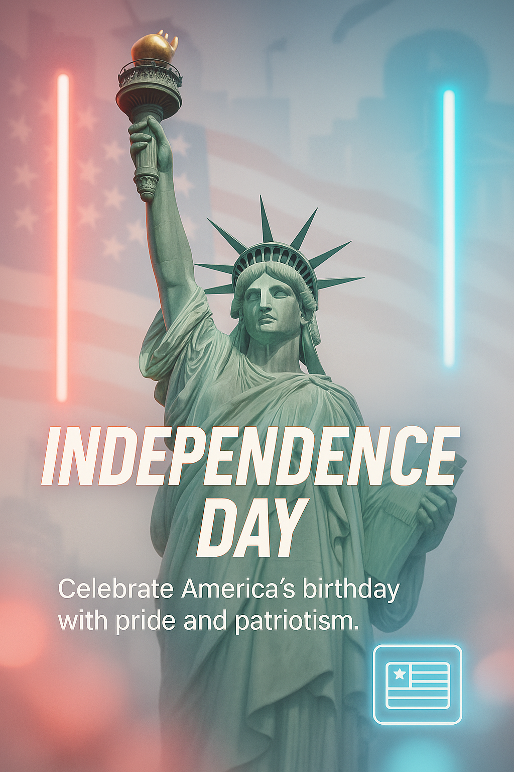 Independence Day Celebration Graphic Featuring the Statue of Liberty