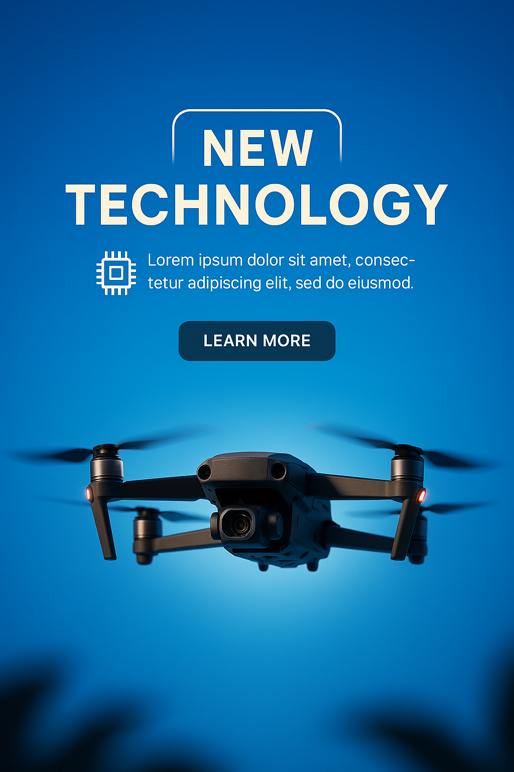 This is a promotional graphic featuring a drone against a blue background. It highlights new technology with a modern design, ideal for marketing campaigns targeting tech enthusiasts.