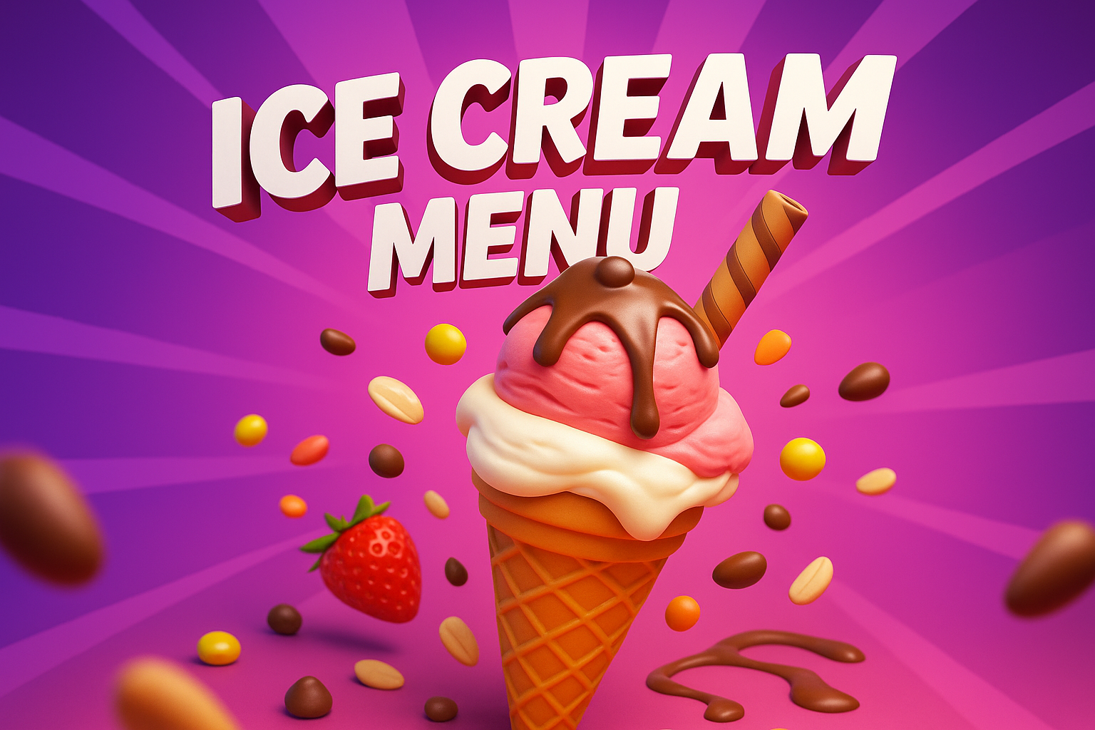 Dynamic Ice Cream Menu Featuring Flavors and Toppings