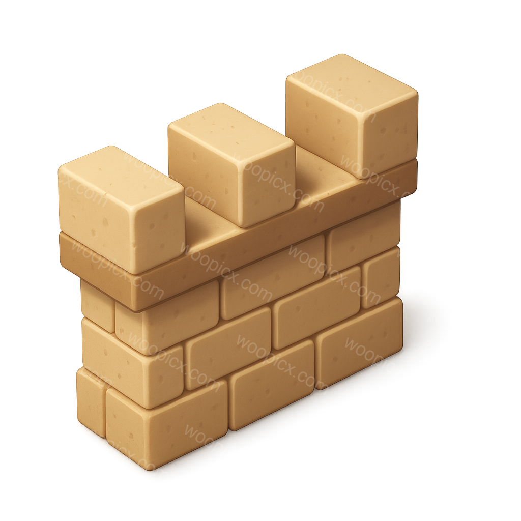 A detailed 3D rendering of a battlement icon featuring a three-quarter view. The design includes volumetric blocks that resemble stone bricks, set against a soft gradient background.