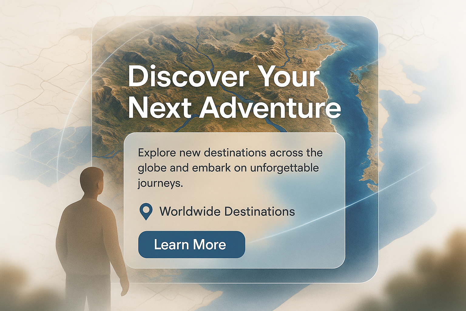 Engaging travel promotion graphic featuring a scenic background and inviting call-to-action, ideal for travel agencies and adventure tourism marketing.