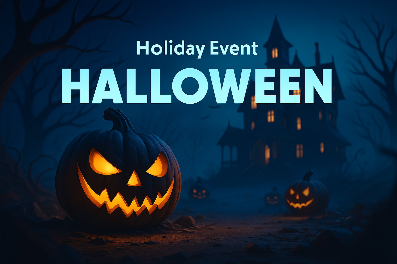Spooky Halloween Landscape with Pumpkins and Haunted House