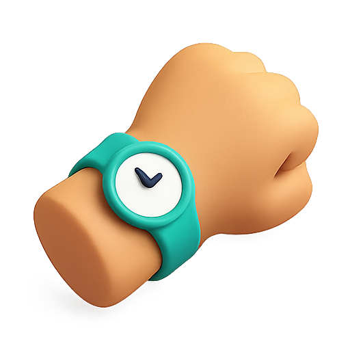 A stylized 3D graphic depicting a hand wearing a modern watch. The design features a playful and colorful aesthetic, suitable for digital applications or lifestyle branding.