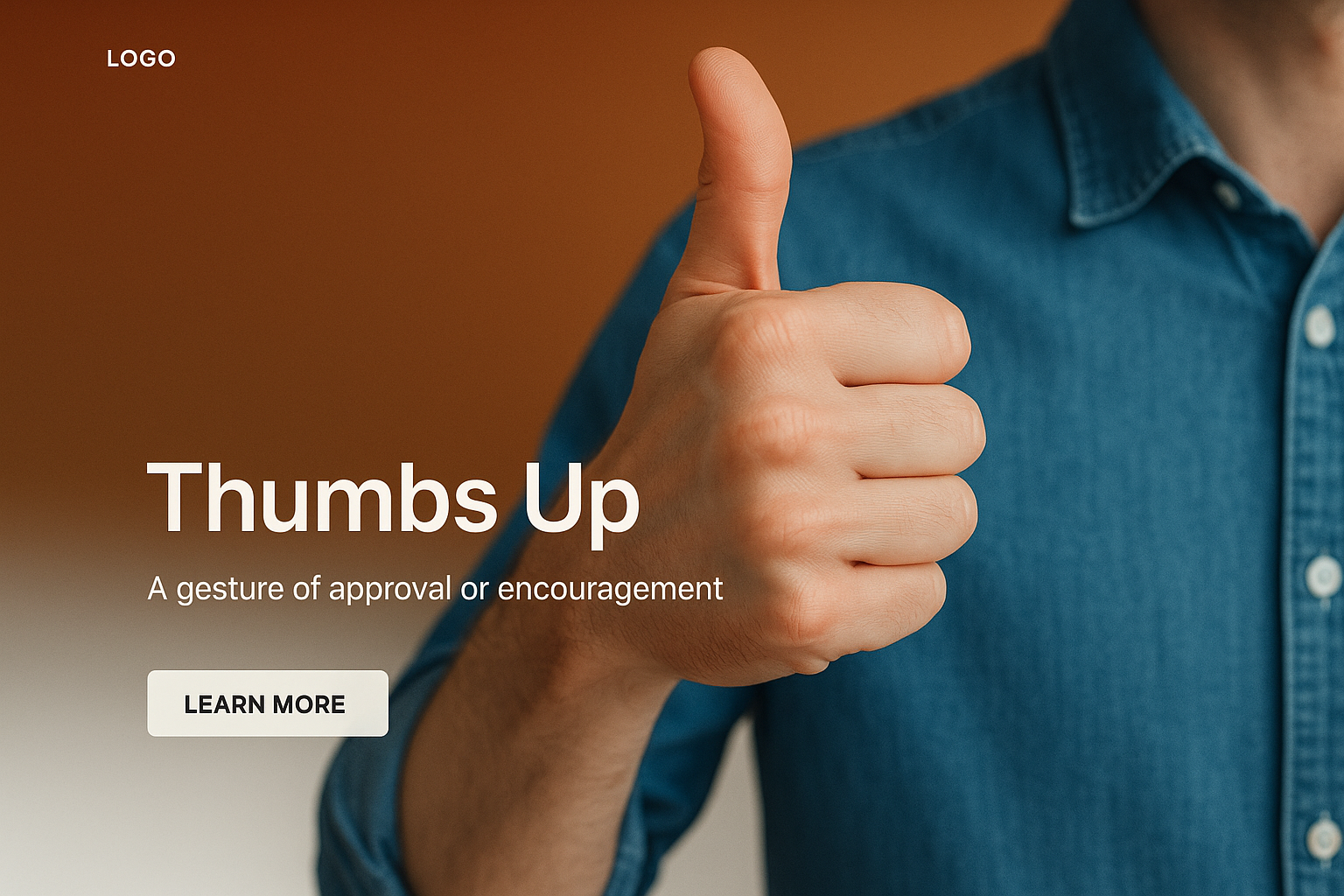 /Collection: /by davooda/Type: PNG/A stylized thumbs up gesture symbolizes approval or encouragement, set against a gradient background. The design features a clear layout for web use, with space for text and action buttons.
