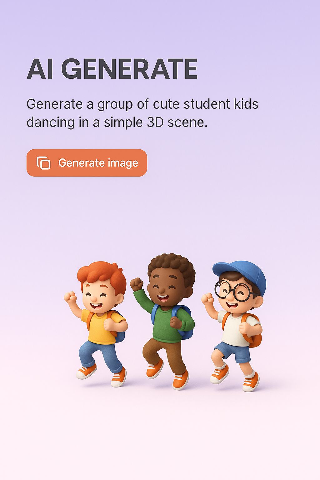 A vibrant scene featuring three cute cartoon student kids dancing joyfully. The characters are set against a smooth gradient background, showcasing a lively and fun atmosphere.