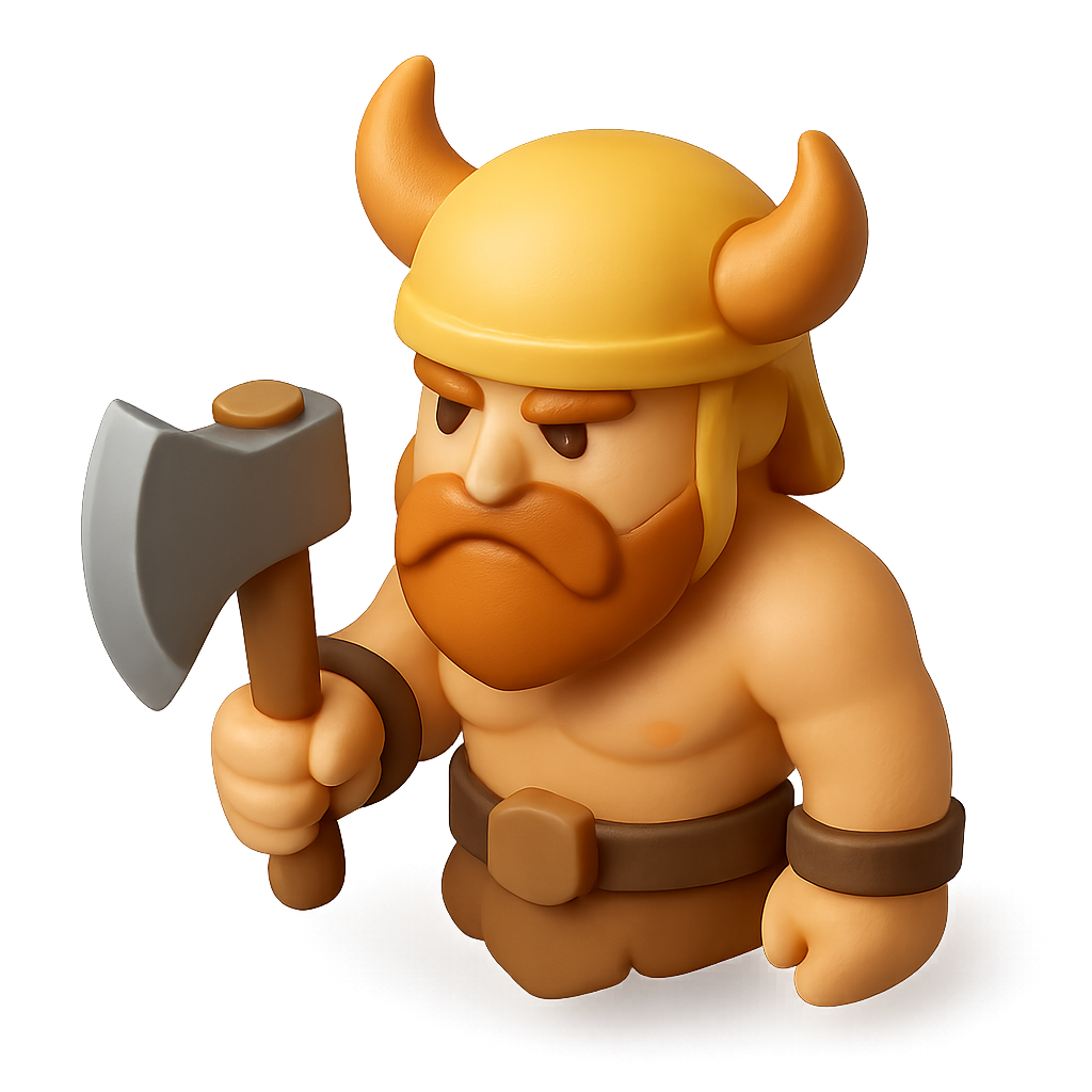 Stylized 3D Barbarian Icon with Axe in Isometric View