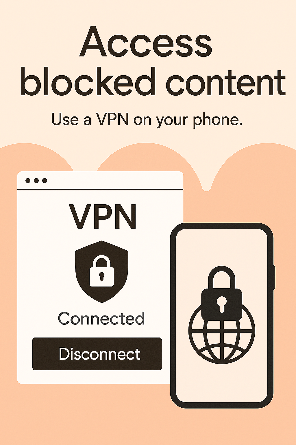 /Collection: /by davooda/Type: PNG/Informative graphic showcasing the use of a VPN to access blocked content, featuring simple icons and a modern design suitable for tech-related marketing.
