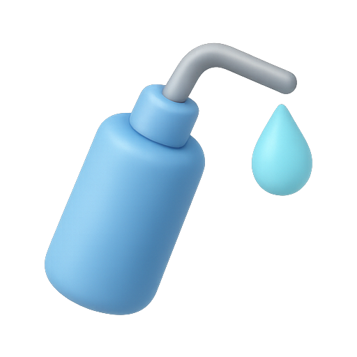 A stylized 3D graphic of a blue spray bottle with a droplet, suitable for use in product design, cleaning supplies, or cosmetic branding.