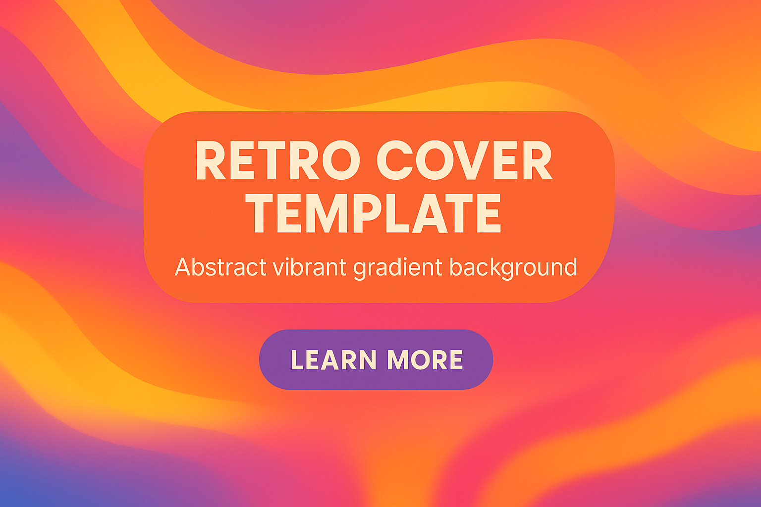 Colorful retro cover template featuring an abstract gradient background with smooth wave patterns, ideal for digital marketing and promotional materials.