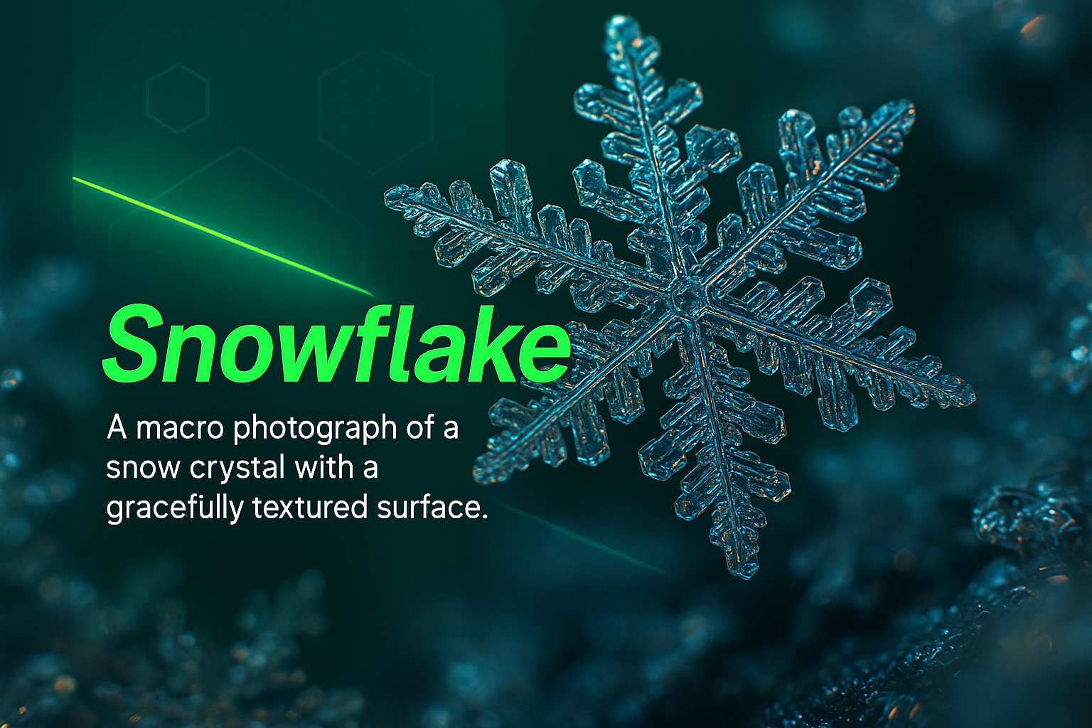 Dynamic Snowflake Crystal Illustration in Vibrant Blue