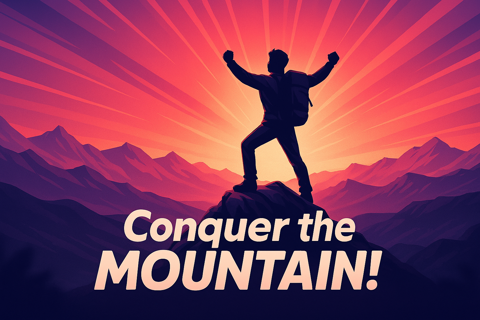 Stunning Mountain Illustration with Dynamic Angles and Bold Text