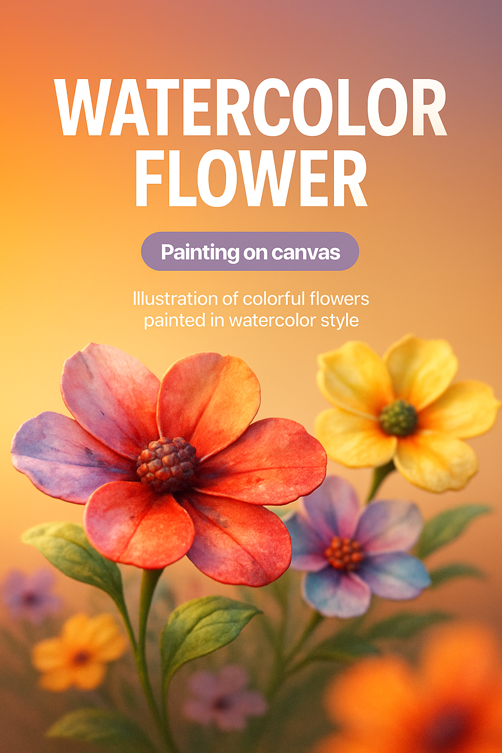 This image features a colorful illustration of flowers in watercolor style. Ideal for art enthusiasts, it showcases vibrant colors and delicate details.