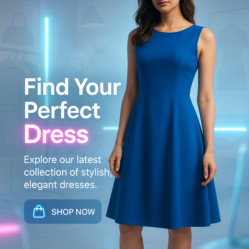 Fashion Promotion Image Featuring Elegant Blue Dress