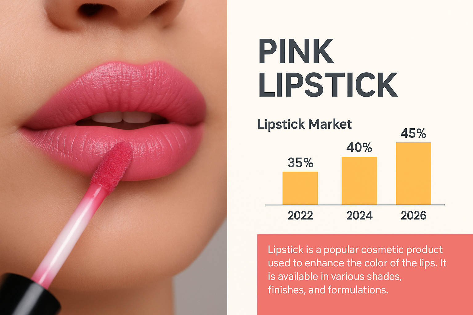 Informative infographic showcasing lipstick market trends with a focus on pink shades. Ideal for beauty industry presentations and marketing strategies.