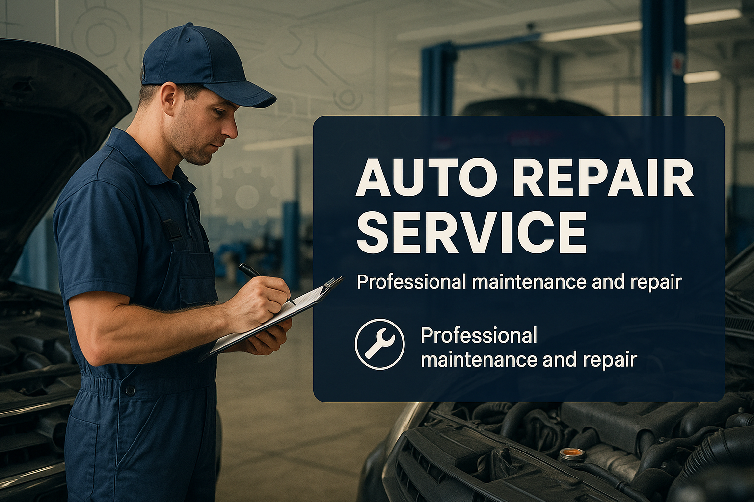 Auto Repair Service Promotional Graphic Featuring Mechanic