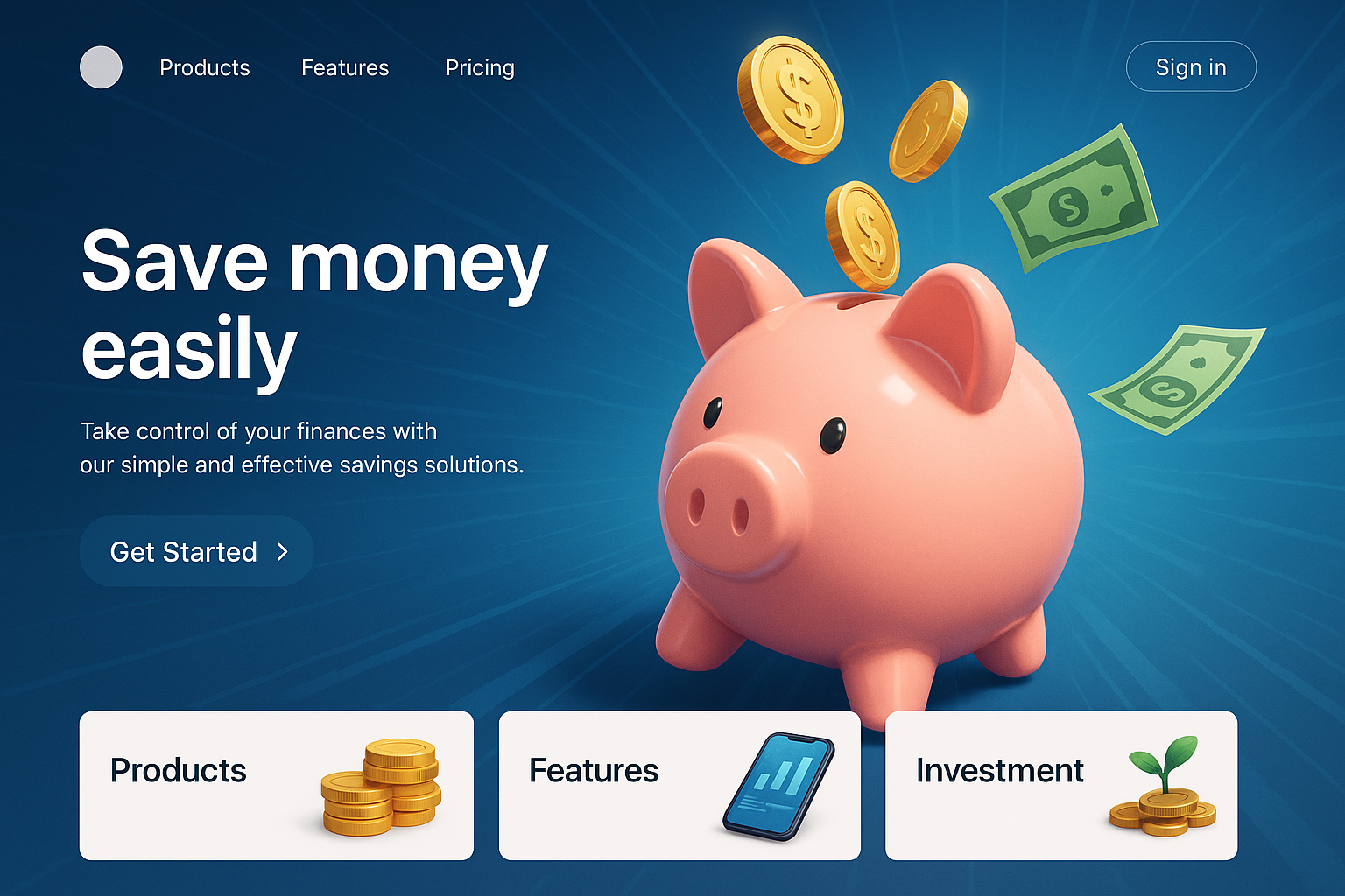 Dynamic Landing Page Design Featuring Piggy Bank and Finance Elements