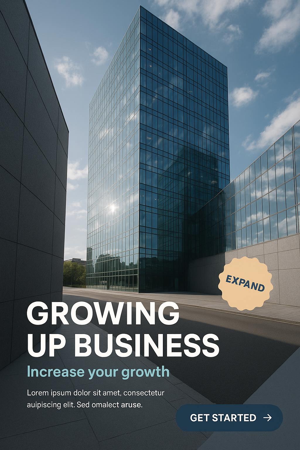 /Collection: /by davooda/Type: PNG/A striking modern office building with a glass facade reflects the clouds and sunlight. An empty street adds to the ambiance of a growing business environment.
