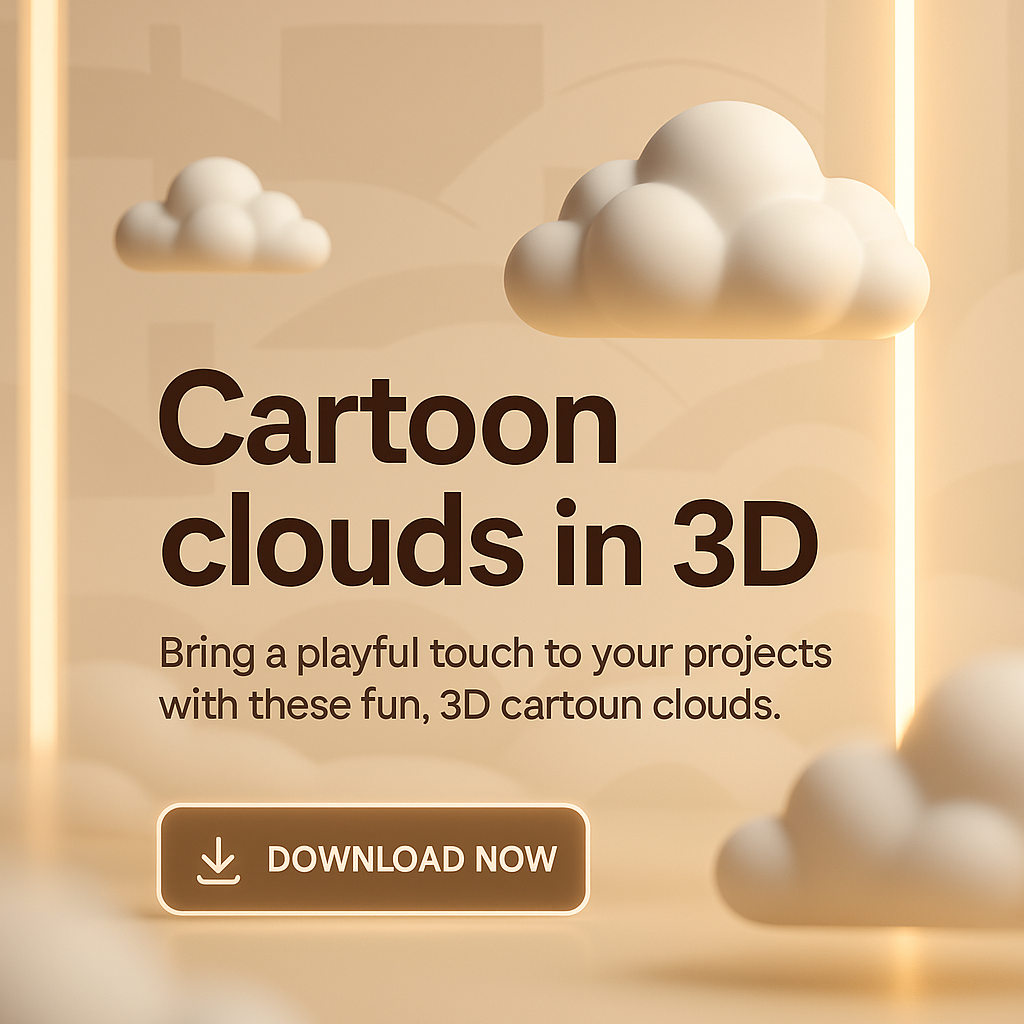 A whimsical 3D graphic featuring cartoon-style clouds, ideal for enhancing playful design projects. The soft color palette and modern aesthetic make it suitable for digital applications.
