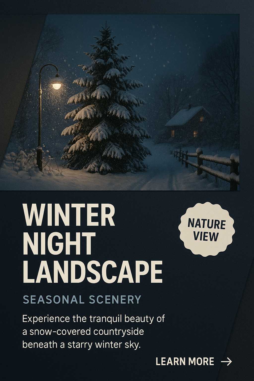 Dynamic Winter Night Advertisement with Snowy Landscape