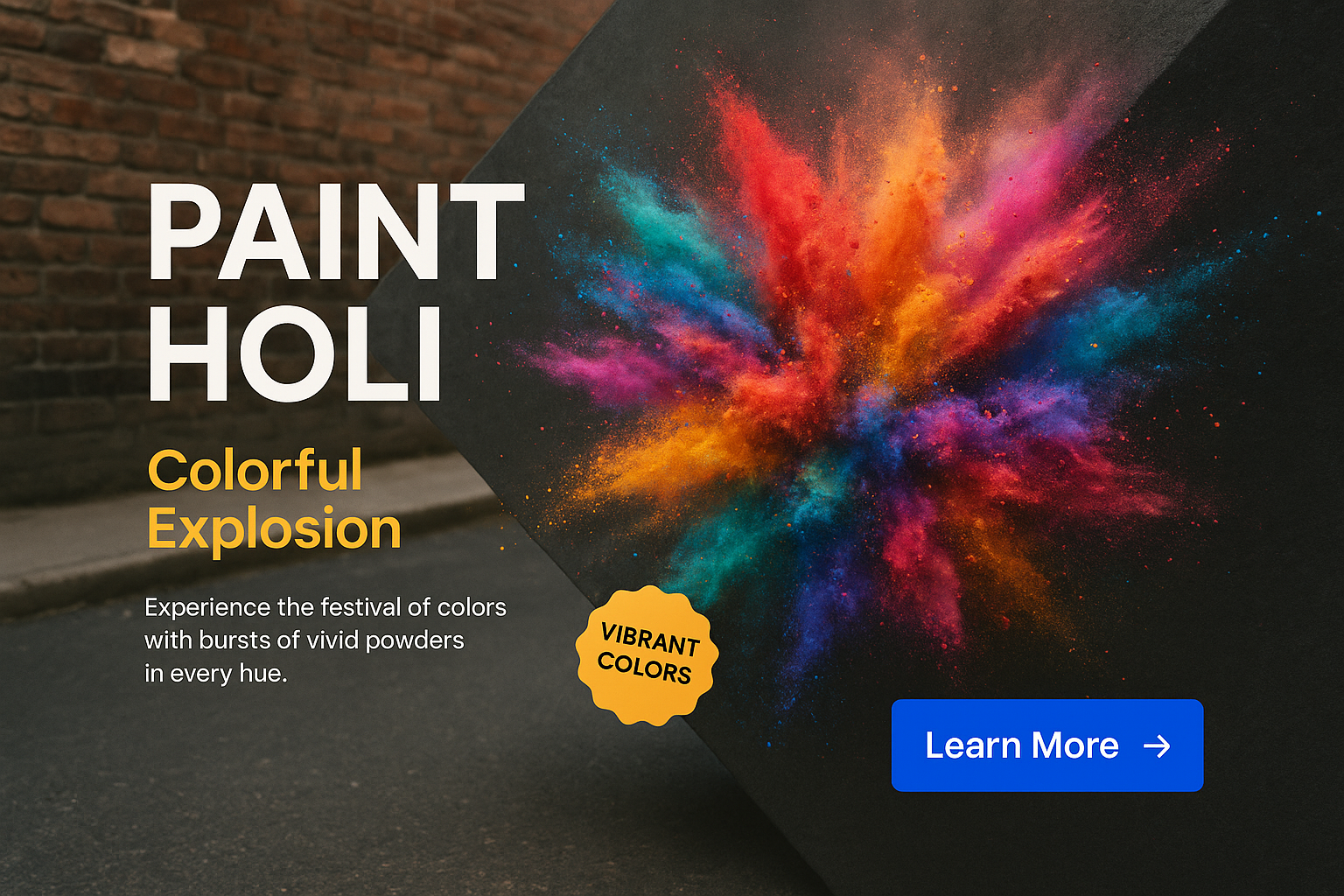 /Collection: /by davooda/Type: PNG/An abstract close-up of a colorful powder explosion, representing the festival of Holi. The design features vivid hues against a textured backdrop, enhancing realism.
