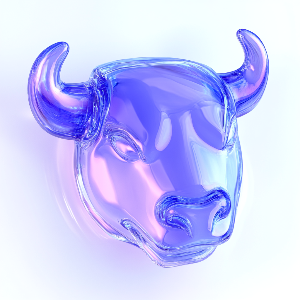 /Collection: /by davooda/Type: PNG/A modern artistic representation of a bull head crafted from translucent glass, showcasing a blend of purple and blue hues. Ideal for decorative purposes or contemporary art displays.