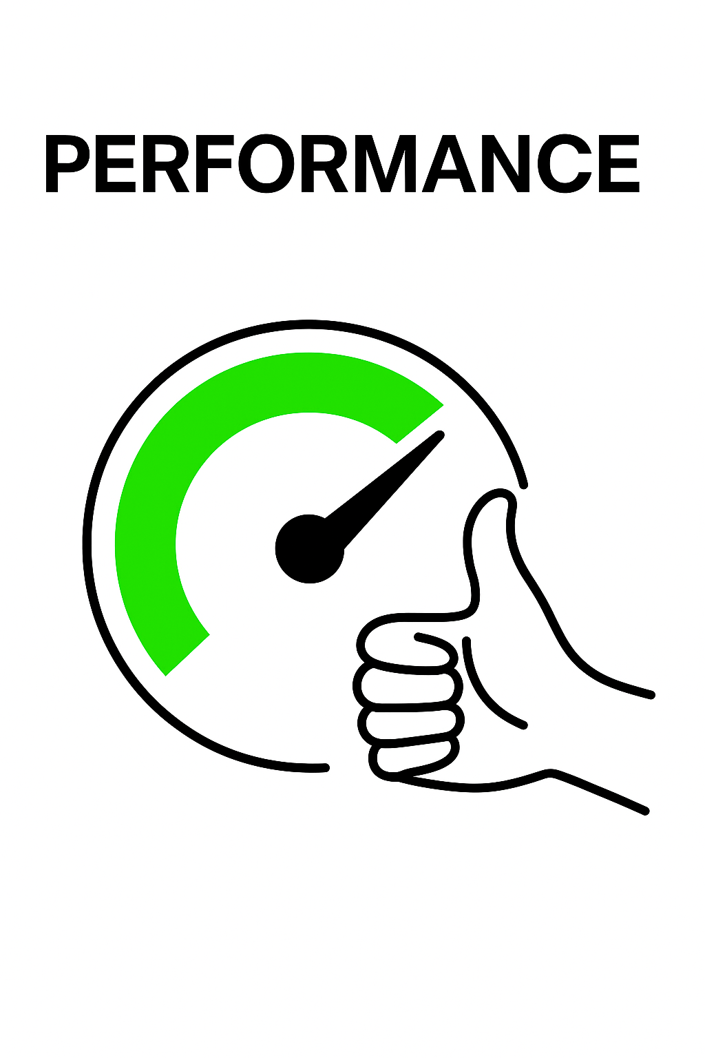 /Collection: /by davooda/Type: PNG/Simple and modern graphic featuring a performance gauge alongside a thumbs-up symbol, ideal for presentations or reports emphasizing positive performance metrics.
