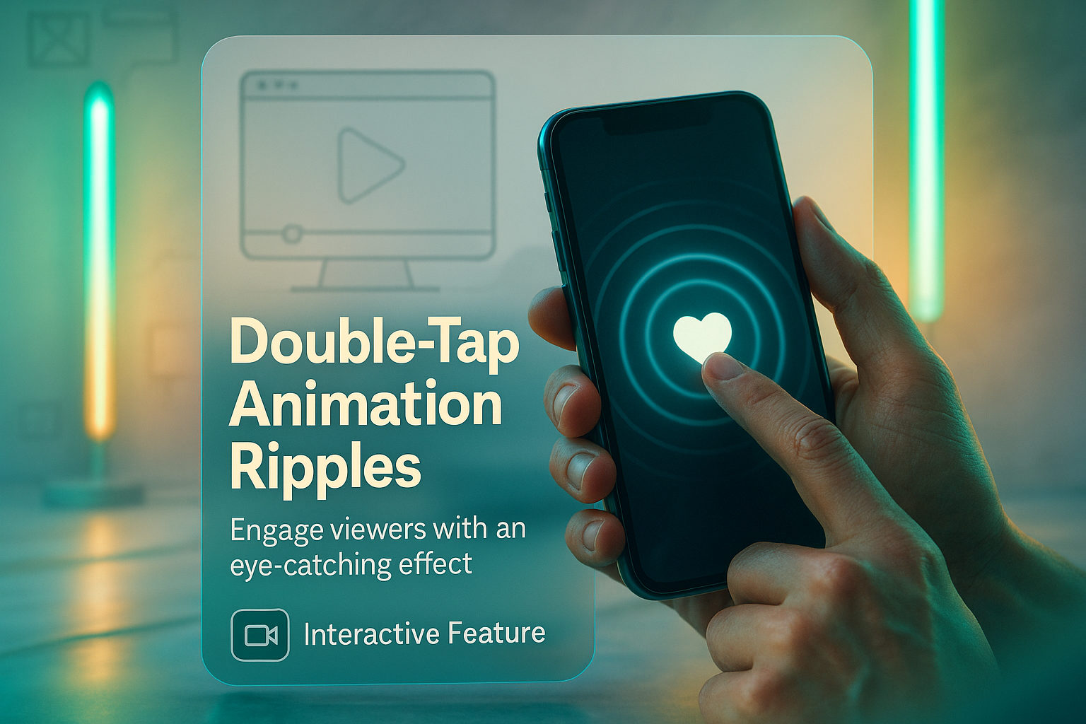 /Collection: /by davooda/Type: PNG/Engaging mobile app feature showcase with a focus on double-tap animation effects. The design uses modern visuals to attract user attention, suitable for tech promotions.