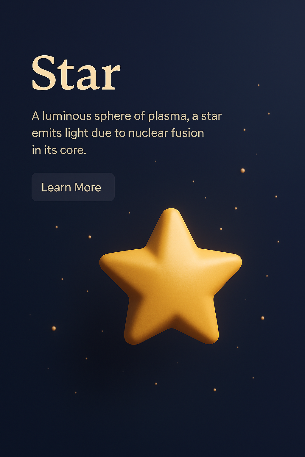 /Collection: /by davooda/Type: PNG/A beautifully designed 3D representation of a star on a dark gradient background, featuring a golden star shape and engaging text elements for an immersive experience.