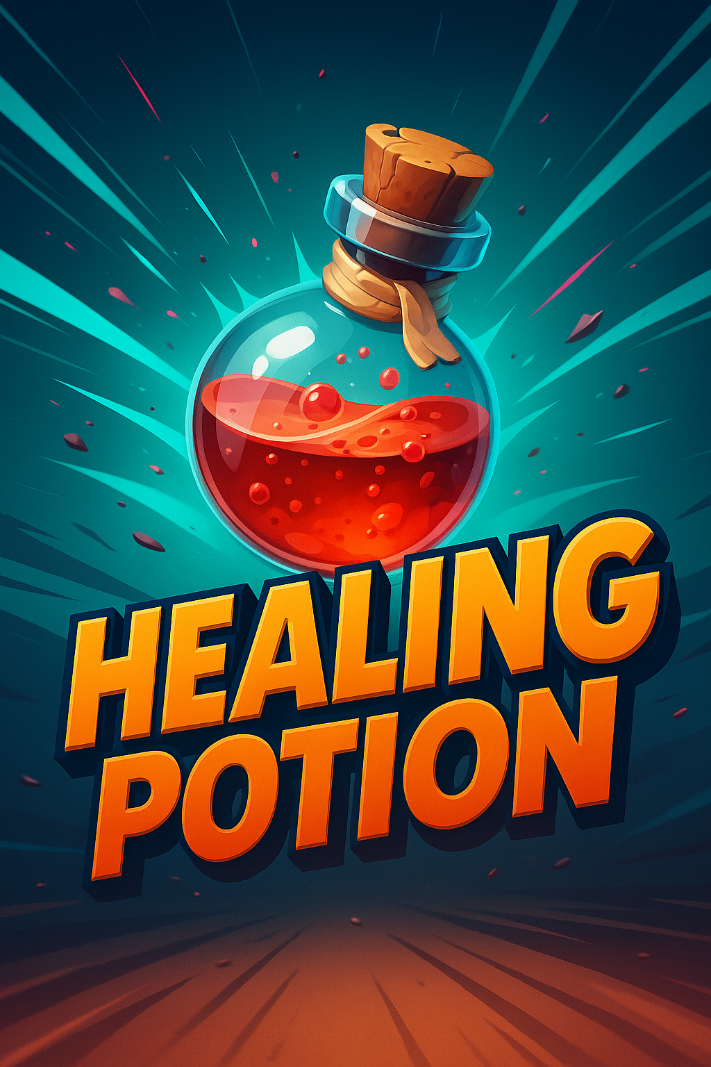 /Collection: /by davooda/Type: PNG/A captivating illustration of a healing potion in a glass bottle, set against a vibrant gradient background. The design features dynamic lines radiating from the center, emphasizing movement and energy.