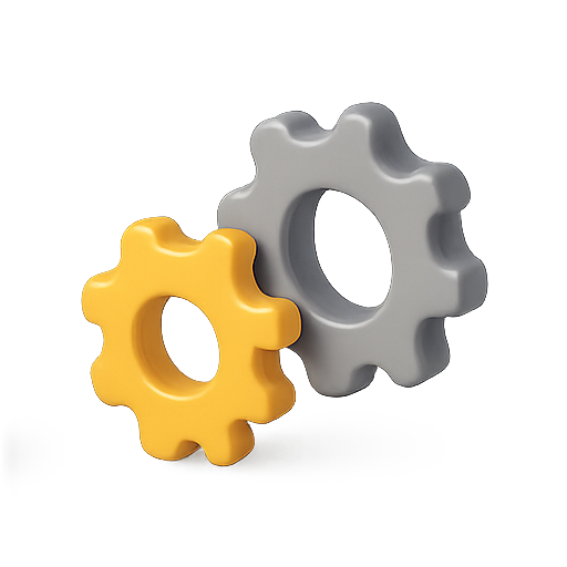 A visually appealing 3D render of two stylized gears, one yellow and one gray, showcasing a modern design. Ideal for tech, engineering, or creative project themes.