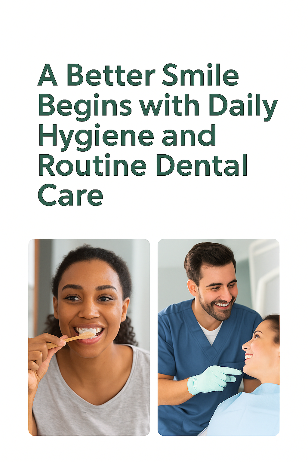 /Collection: /by davooda/Type: PNG/A visually appealing promotional graphic highlighting the importance of daily hygiene and routine dental care, featuring relatable imagery suitable for dental clinics or health campaigns.