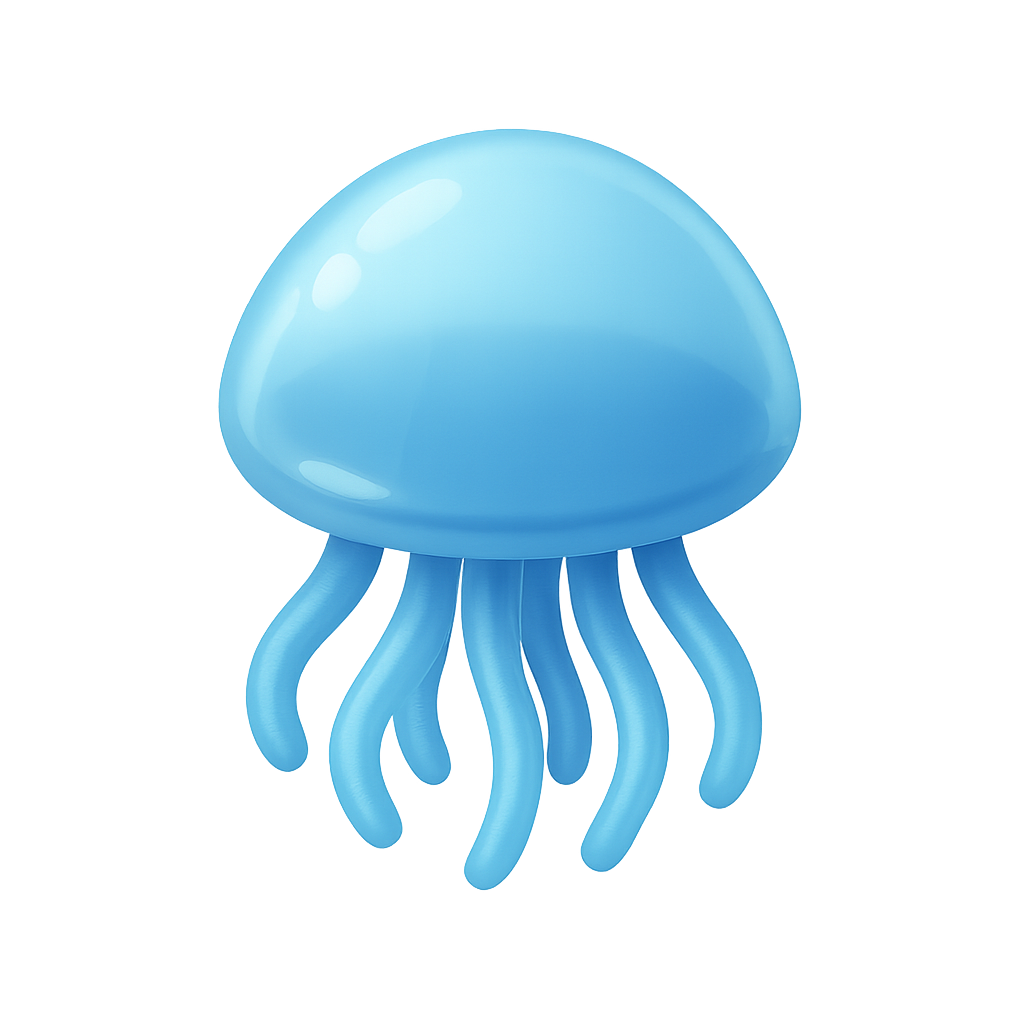 A visually striking 3D icon of a jellyfish, featuring a translucent blue dome and flowing tentacles, set against a soft gradient background.