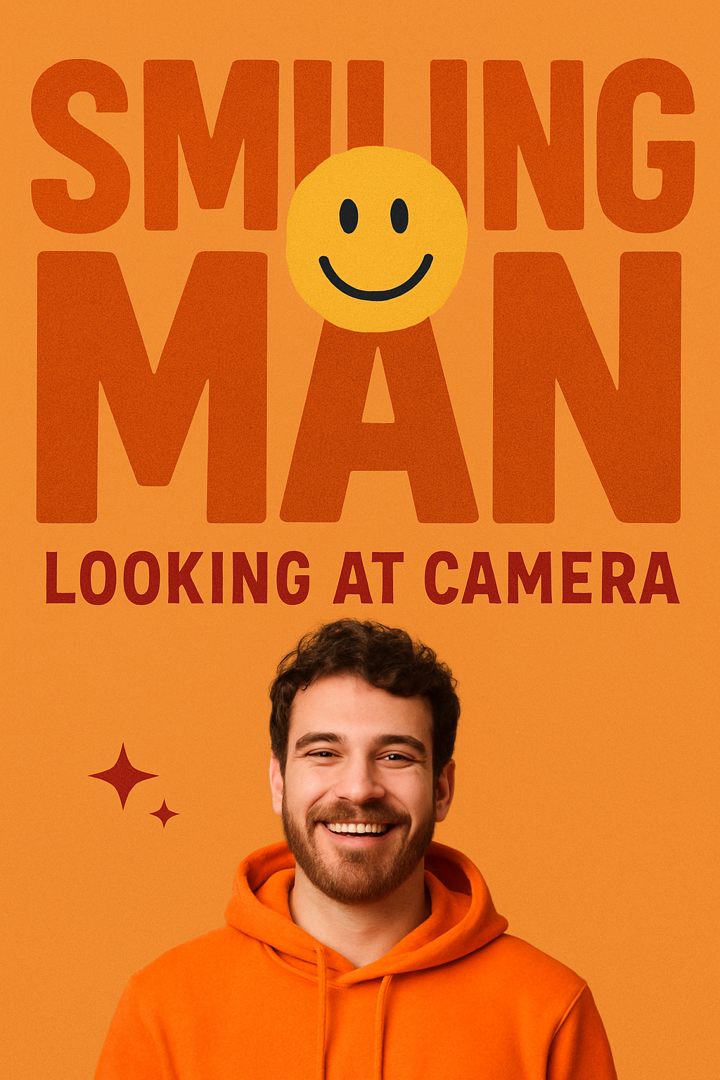 /Collection: /by davooda/Type: PNG/Vibrant portrait featuring a smiling man in an orange hoodie, against a bright orange background. Ideal for social media or promotional content focusing on positivity.