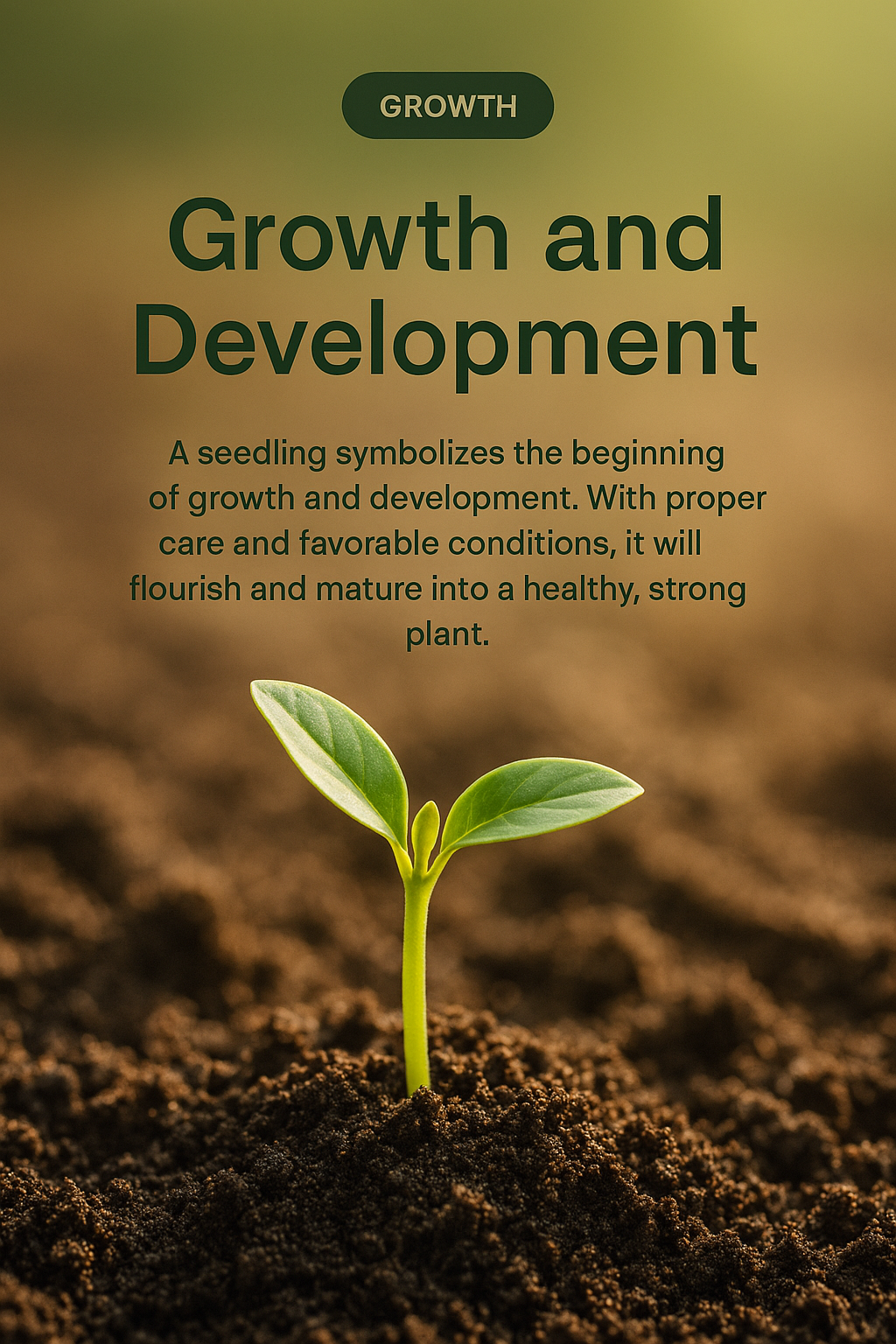 Informative infographic featuring a seedling representing growth and development, designed with soft colors and a clean layout suitable for educational purposes.