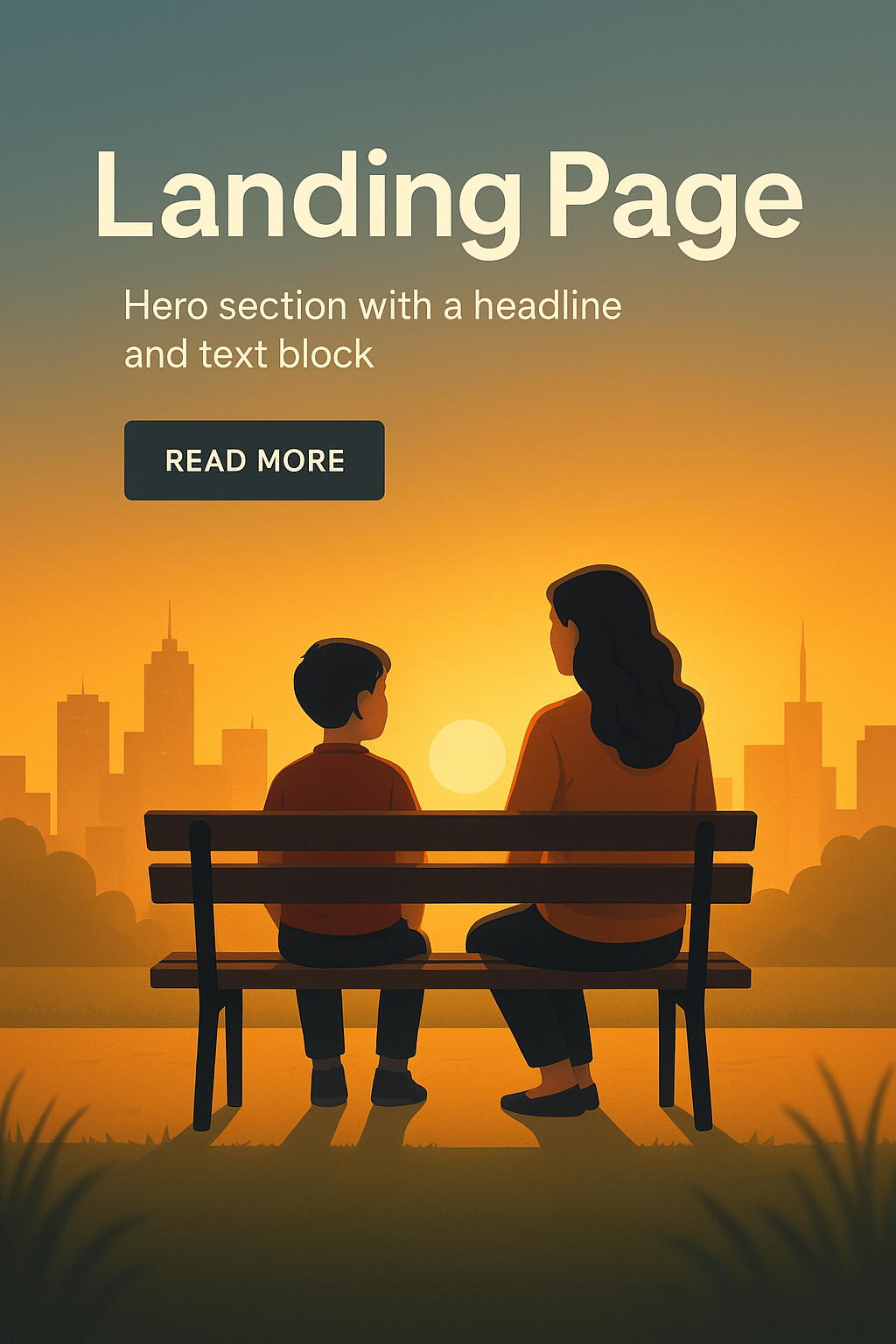 /Collection: /by davooda/Type: PNG/A digital illustration representing a hero section for a landing page with a sunset backdrop. It features a mother and child on a bench, ideal for web design inspiration.