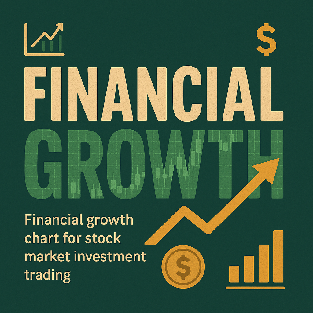 Financial Growth Graphic Featuring Money and Stock Market Elements