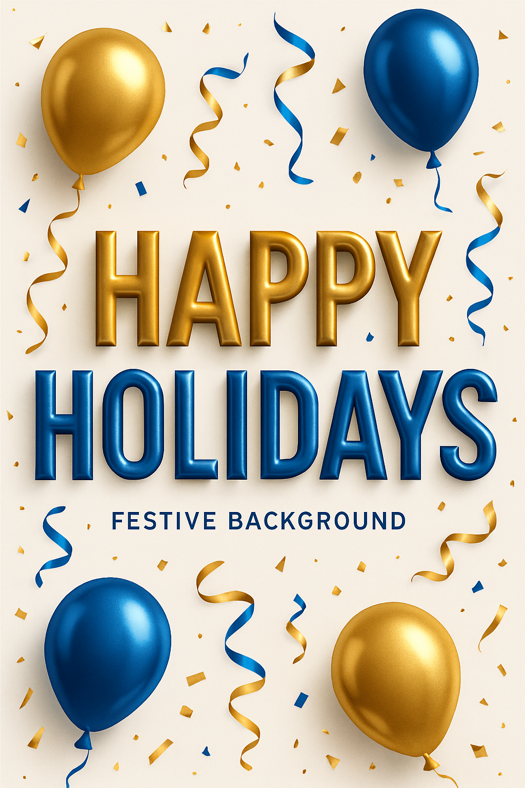 Vibrant holiday greeting card featuring bold typography and festive balloons. Ideal for seasonal promotions or personal greetings.