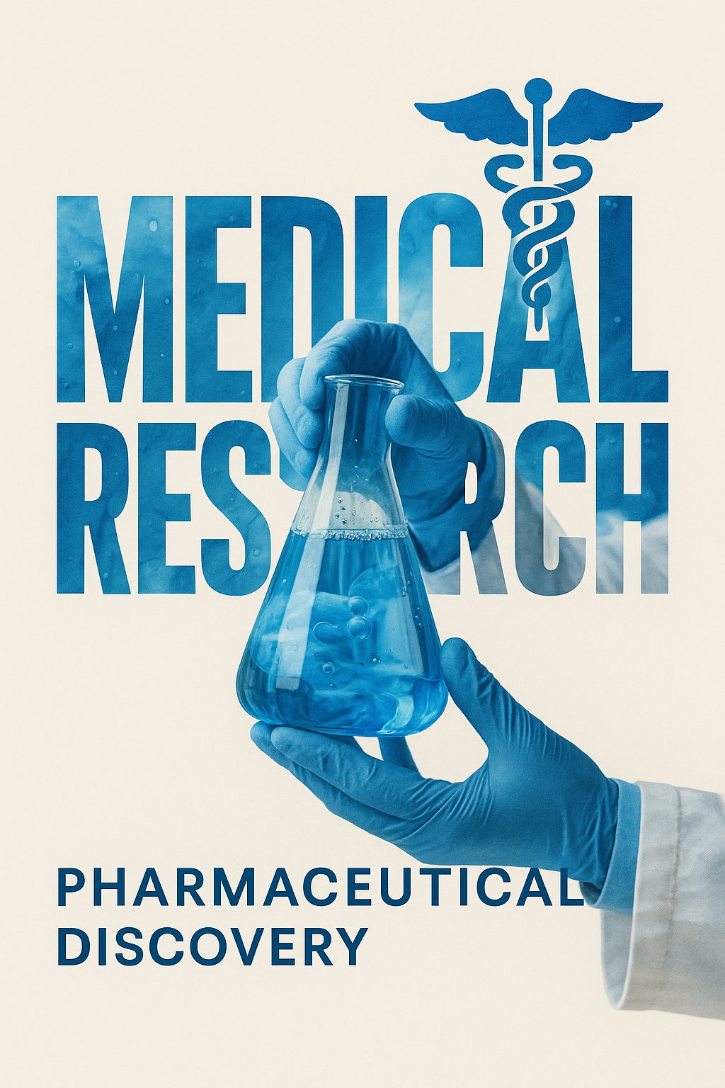 Medical Research Promotional Graphic Featuring Laboratory Equipment