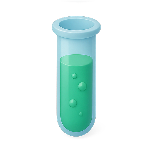 A modern graphic representation of a test tube containing green liquid and bubbles, ideal for educational or scientific themes in digital media.