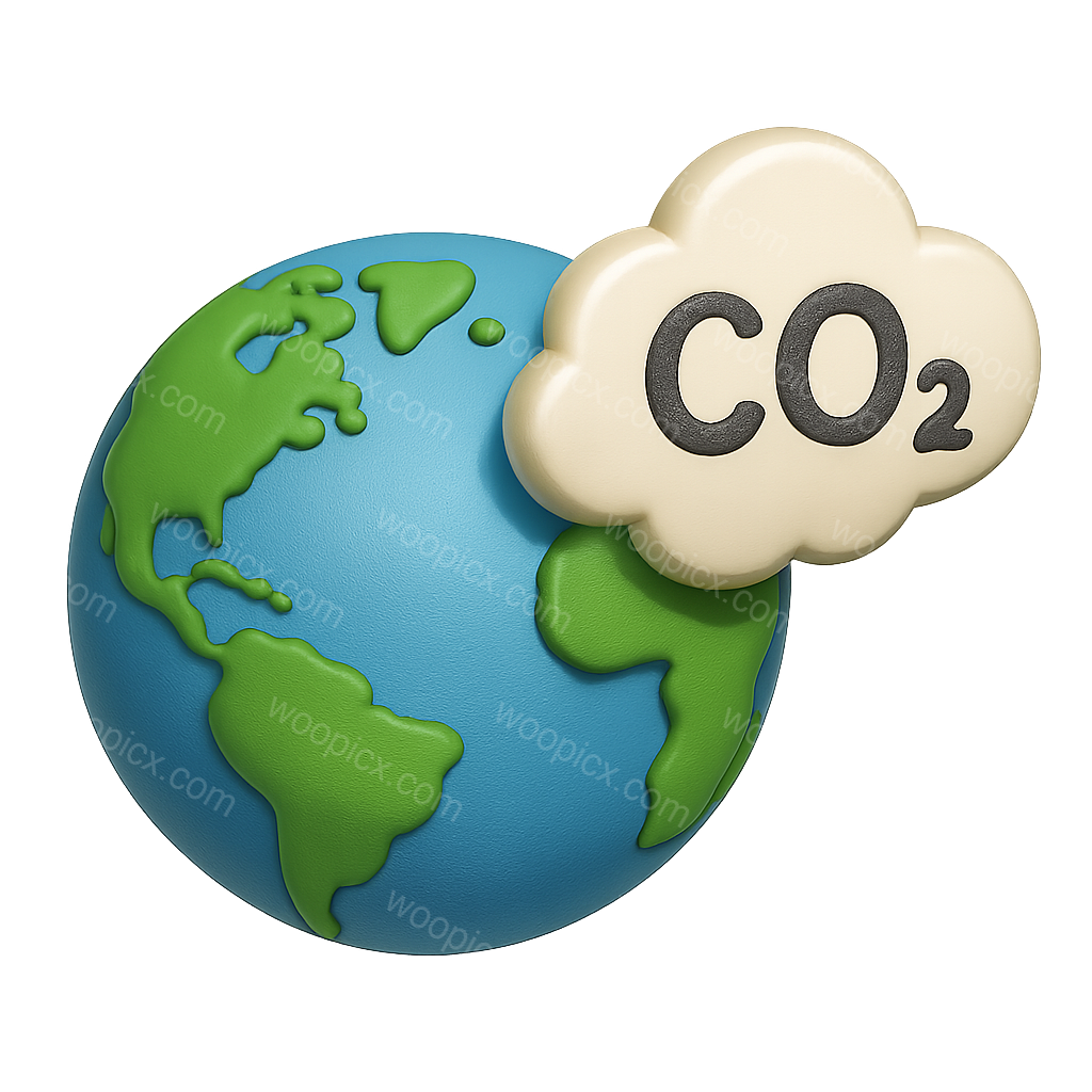 /Premium/Collection: /by davooda/Type: PNG/A vibrant 3D illustration of Earth featuring a carbon dioxide cloud. The globe is shown in a three-quarter view, highlighting the Americas and a stylized CO2 cloud above.