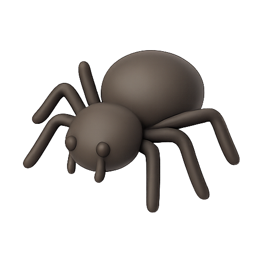A stylized 3D representation of a cartoon spider, featuring smooth shapes and a simple design. Suitable for use in digital communications, gaming, or educational materials.