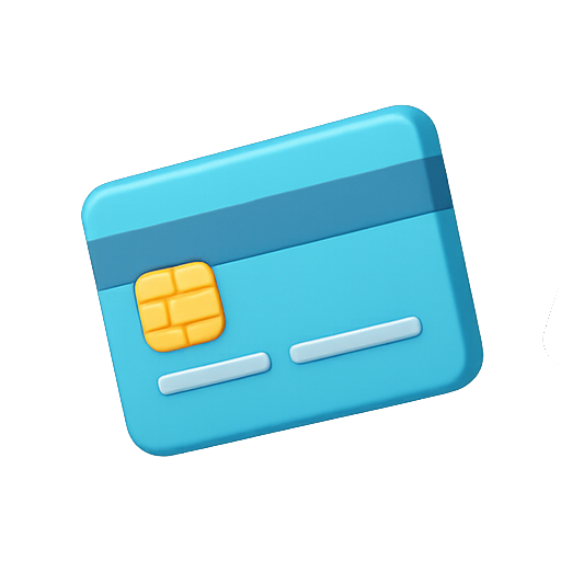 A vibrant and modern representation of a credit card emoji, featuring a blue design with a yellow chip. Suitable for digital communication and financial-themed content.